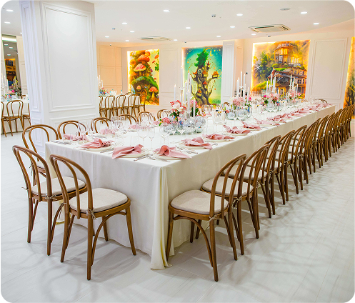 Candy Room — sală elegantă și primitoare, inspirată de tema dulciurilor. Decorul ușor și plin de culoare creează o atmosferă de bucurie și sărbătoare. Sala poate găzdui până la 35 de oaspeți și este perfectă pentru evenimente restrânse, zile de naștere pentru copii și sărbători în familie.