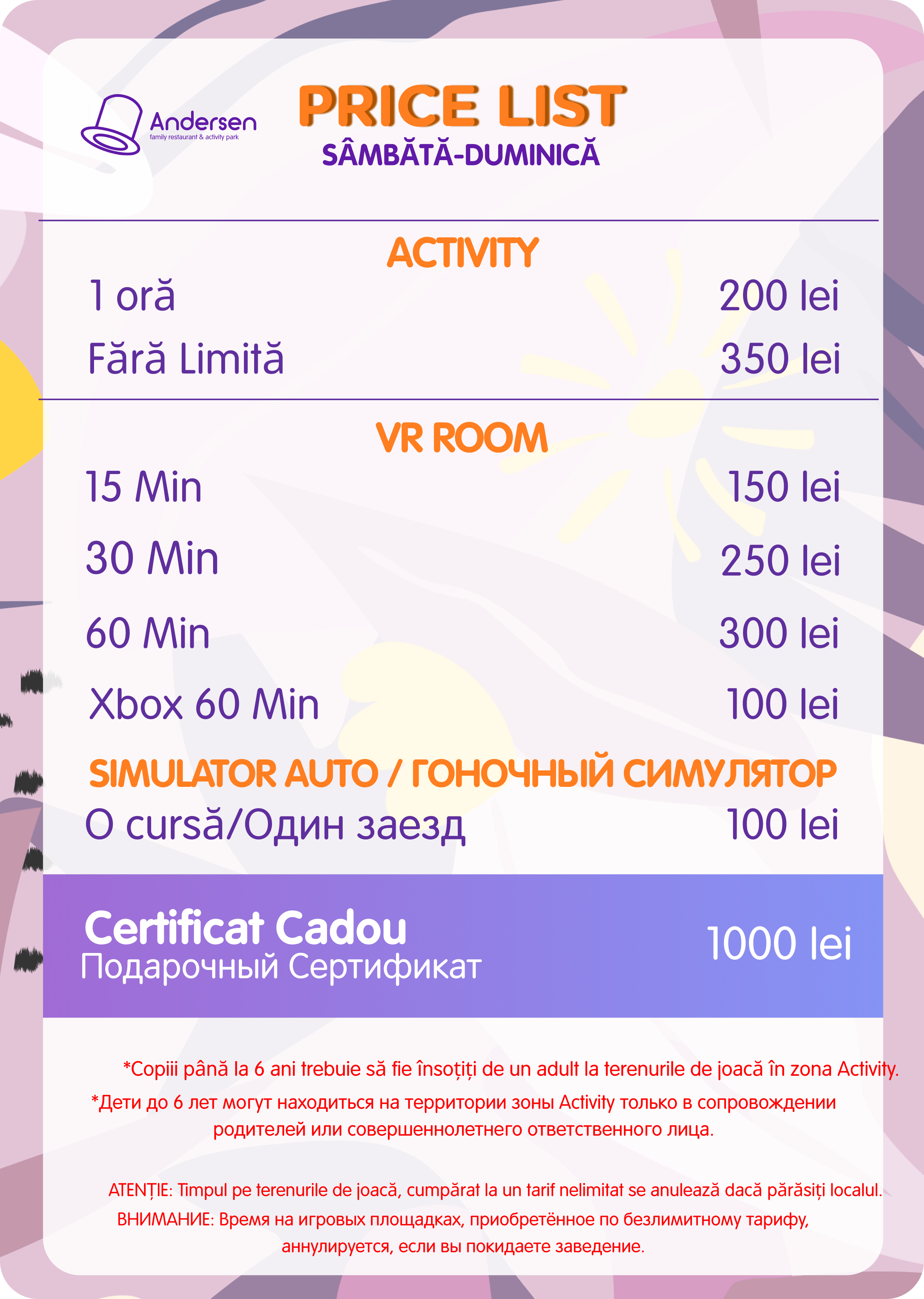 Prețurile parcului ANDERSEN BUIUCANI